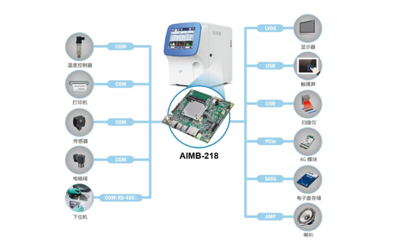 血细胞分析仪需要采用血液样品,并对血液内各项指标进行大量的数据处理,商业级别的主板接口数量往往不能满足其对自动化控制和数据传输的需求。