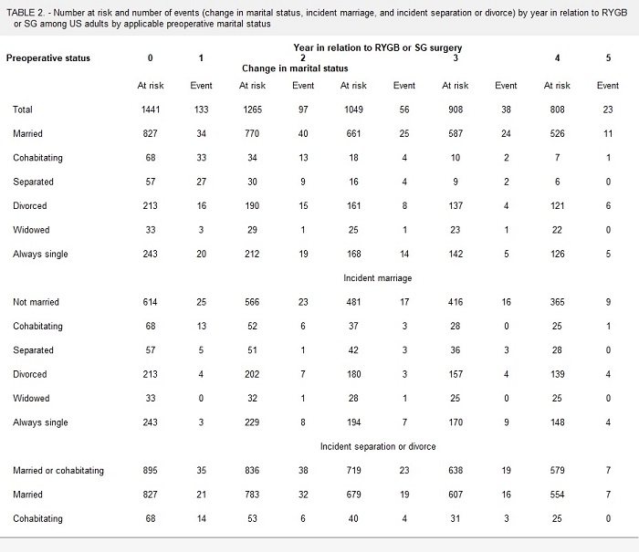 然而在分居和离婚的群体中,那些体重下降更多、以及在术后性欲增强的人,更有可能分居或离婚。