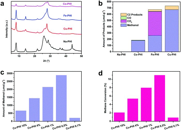 研究配图 1:M-PHI 粉末的 XRD 图谱 / 不同铜负载量下的甲烷转化率