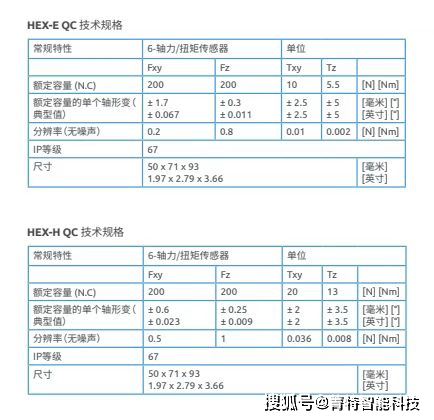 HEX传感器的技术规格