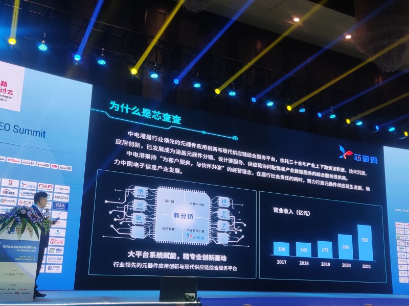11月10日,由国际科技媒体集团AspenCore举办的2022国际集成电路展览会暨研讨会(IIC Shenzhen)在深圳隆重举行。在同期举办的全球CEO峰会上,艾矽易副总经理冼广升先生发表了题为《构建数据感知,尽享数智未来-芯查查赋能元器件供应链》的演说。