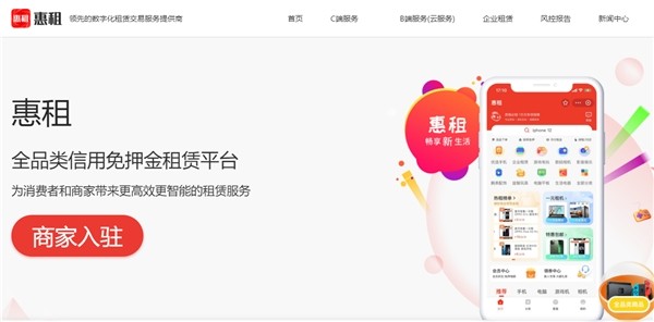 另一方面惠租依托于芝麻信用免押金体系开发惠租云SaaS系统,基于长期沉淀的惠租成熟金融租赁交易能力,为租赁商提供完整信用租赁解决方案。