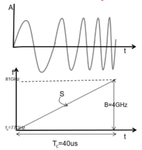 上图中B为带宽(bandwidth:信号连续频带中最高和最低频率之间的差值),Tc为信号持续时间,S为信号斜率(S=B/Tc)。