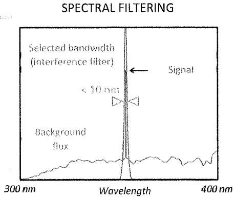 由于白天环境光在全波长范围内均会产生背景噪声,可以通过滤光片在空间和波长上对背景噪声进行滤除。