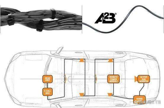 ADI(Analog Devices Inc.)通过对音频总线的优化,推出A2B(Automotive Audio Bus)车载音频总线,能比传统模拟音频总线能够提供出色的音频质量,同时还能大大节省汽车音频线束重量和成本(约减少75%)。