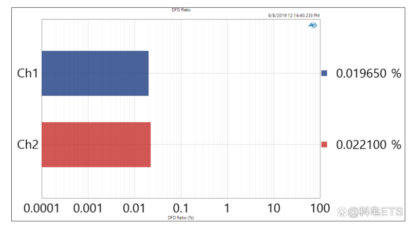 实际测量值见下表。注意≤ 0.5%被视为标准性能产品的良好性能,以及≤ 0.1%被认为是高性能产品的良好性能。该DUT在约0.02%时表现出特别好的性能,如下图所示: