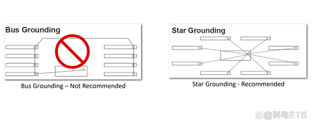 母线接地有时似乎是一种便捷的方法,但往往会产生最坏的结果。链路的每个支路中的电阻将设备置于不同的接地电位,而且不如星形接地有效。
