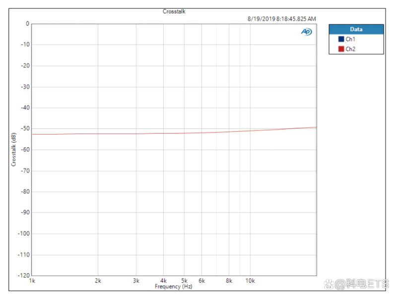 串扰是多信道系统中信号从一个信道到另一个信道的无意耦合。它通常由杂散电容、电感耦合、共享电源和共享接地回路引起。进行串扰测试有助于确保一个信道上的信号不会耦合到其他信道中。如今,汽车功放串扰测试极限的性能目标在以下范围内:标准性能产品≤-40dB,高性能产品为≤-50 dB。通常,性能被指定为使用1瓦输出电平进行测试。下图显示了一个高性能音频放大器的性能——