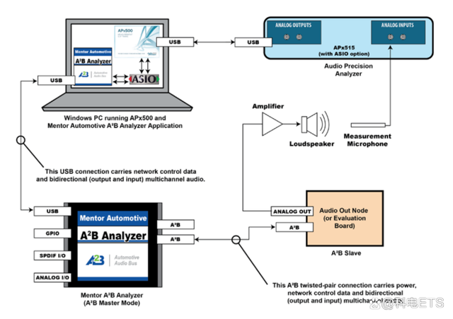 A2B功放在车型的应用比例也越来越多,而AP音频分析仪搭配Mentor的A2B协议分析仪,已是成熟的测试A2B功放的解决方案——