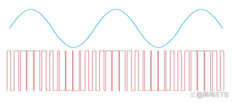 D类功放使用脉宽调制(PWM)或某些其他类型的调制来将功放的效率最大化。每个脉冲的最大导通时间出现在正峰值,最大关断时间出现在负峰值。在正弦波的振幅中点,占空比约为50%——