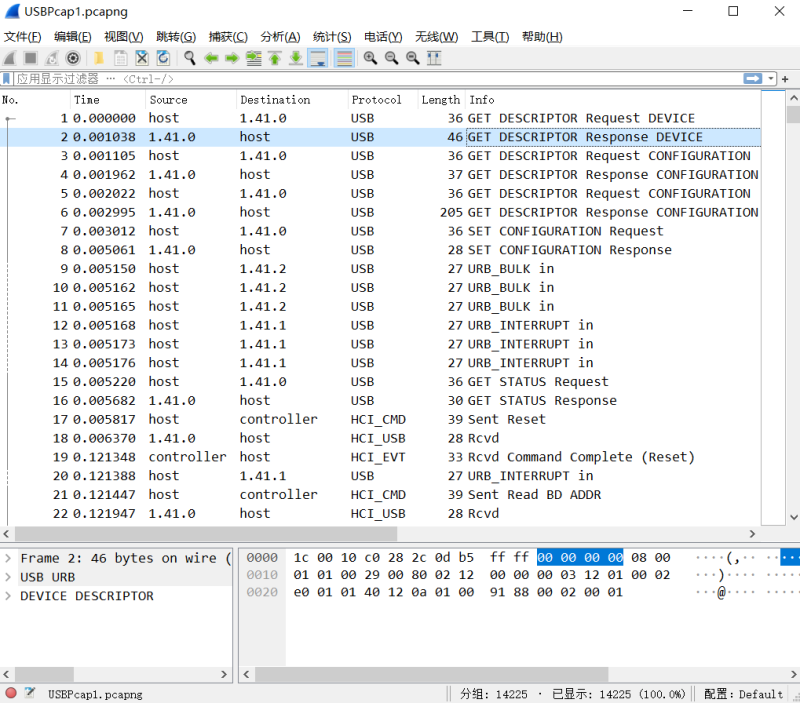 1、打开Wire shark,将USBPcap1 设置为“Capture from newly connected device”;