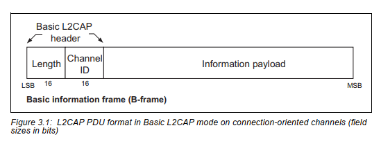 可以看到这是一包HCI ACL包,通过Core spec中描述的可知HCI数据包的前4个字节为ACL data packet的相关参数(图6)。