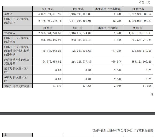 汉威科技2022年净利润2.76亿元,同比增长4.94%