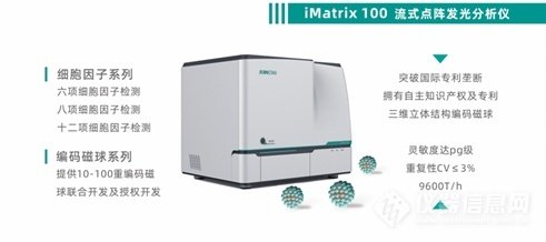 iMatrix100流式点阵发光分析仪是中翰生物自主研发拥有国际专利且具备完全自主知识产权的全自动、高通量、多指标液相芯片平台,拥有创新性“主-客体球”结构的荧光编码微球技术。搭载iMatrix Pre 流式全自动样本前处理系统,可实现批量快速检测。目前三款细胞因子联合检测试剂盒已获得注册证,即将推出肿标、自免、过敏原、病原体等组合。