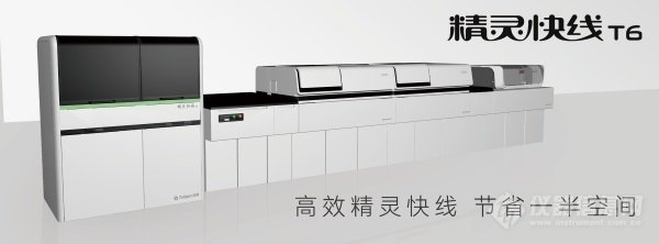 上海透景带来了新一代高效流水线—精灵快线系列,真正做到“高效精灵快线,节约一半空间”。其中精灵快线T6是一体化前处理,在略超一平方米的空间内完成了进样、离心、开盖等样本前处理工作,极大节省空间;与检测仪器间采用直接连接的方式,没有多余外接轨道,既缩短了样本的运输距离,又节省了空间;可连接由TESMI i200和TESMI F4000组成的免疫双子岛,前者可达480测试/小时,后者采用流式荧光发光原理,可对多个指标进行联检,最高可达4000测试/小时,两者组合可检测百余项免疫指标,达到“发光两兄弟,一岛顶十台”的效果。