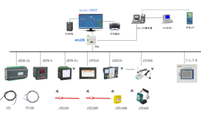 Acrel-2000T无线测温监控系统通过RS 485总线或以太网与间隔层的设备直接进行通讯,系统设计遵循国际标准Modbus-RTU、Modbus-TCP等传输规约,安全性、可靠性和开放性都得到了极大地提高。该系统具有遥信、遥测、遥控、遥调、遥设、事件报警、曲线、棒图、报表和用户管理功能,可以监控无线测温系统的设备运行状况,实现快速报警响应,预防严重故障发生。