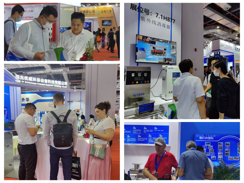 河北优威环保设备科技有限公司(简称“优威环保”)携中低压紫外线消毒器、水质在线监测仪、臭氧消毒器、电子水处理仪、AOT光催化消毒设备等系列产品亮相本届行业盛会,受到大量观众欢迎,现场人流不断,热闹非凡。