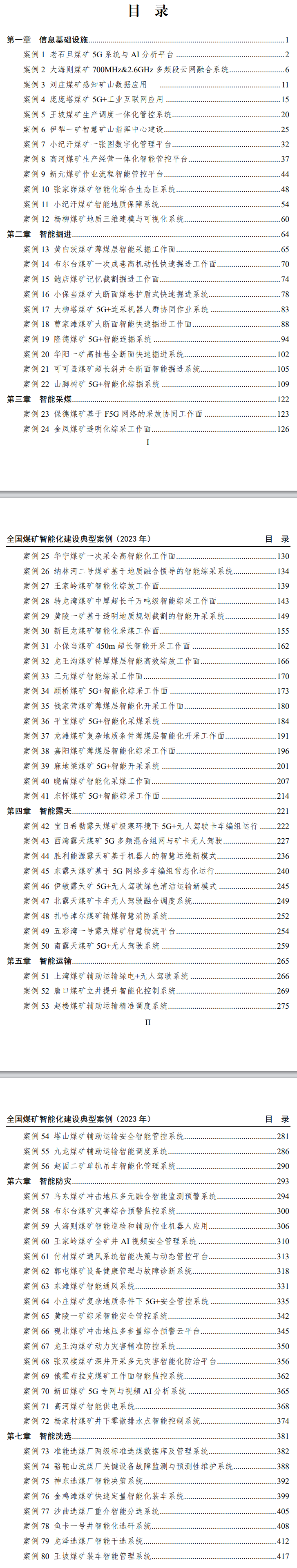 本次选出的80项煤矿智能化建设典型案例,是从各地、各企业推荐的154项典型案例中,经专家评选出的。案例覆盖信息基础设施、智能掘进、智能采煤、智能露天、智能运输、智能防灾、智能洗选7个方向。现编辑形成《全国煤矿智能化建设典型案例汇编( 2023年)》,供各地、各有关企业和研究机构在工作实践中学习借鉴。
