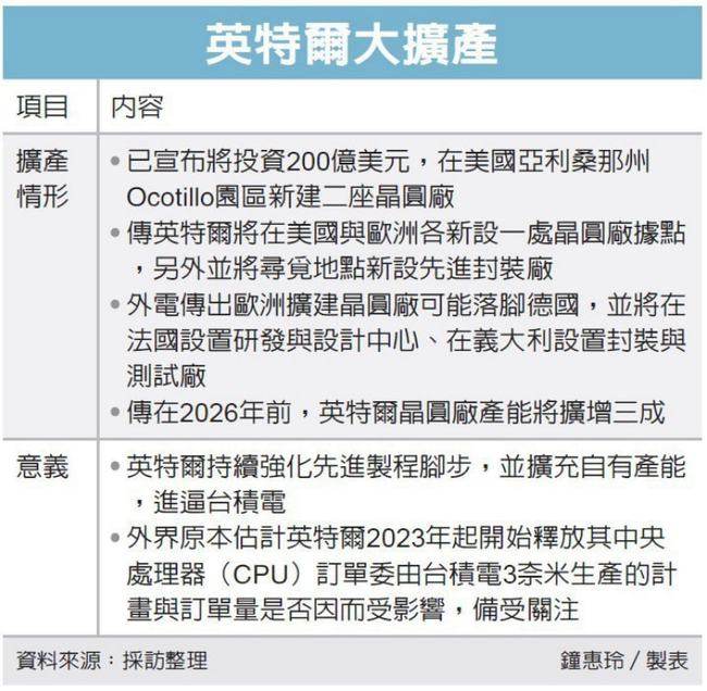 【为挑战台积电,英特尔将在全球大扩产,五年内扩增晶圆厂产能三成】