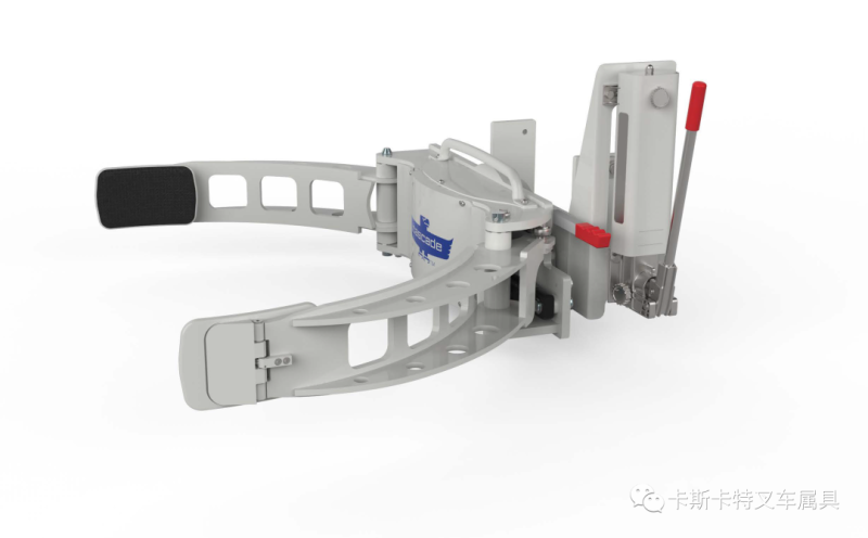 标配系黑色硫化网槽状橡胶垫V型夹板,另有成形轮廓黑色硫化橡胶型夹板可供选择。V型夹板更适用于搬运多种类型纸卷,包括软性纸卷等,适用于大多数工况。成形轮廓夹板适用于搬运直径大、宽度窄的纸卷。