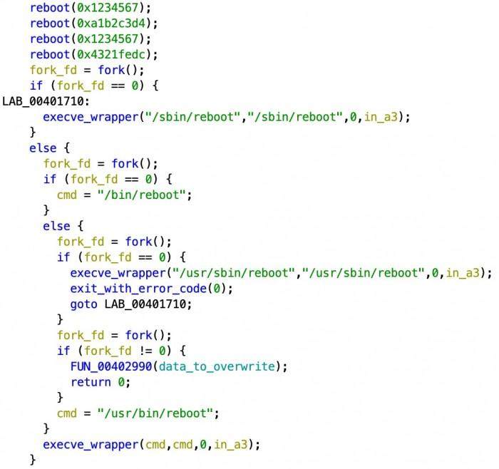 至于这款擦除器的功能,研究人员称其相当“通用”。因为在尝试破坏数据之前,它会对文件系统和各种已知存储设备上的文件进行深度抹除,然后让设备重启变砖。