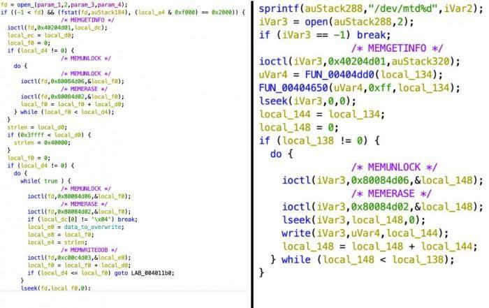 AcidRain 的功能相对简单,并且会进行暴力尝试。意味着攻击者要么不熟悉目标固件的细节,要么希望该工具保持通用性和可重复使用。