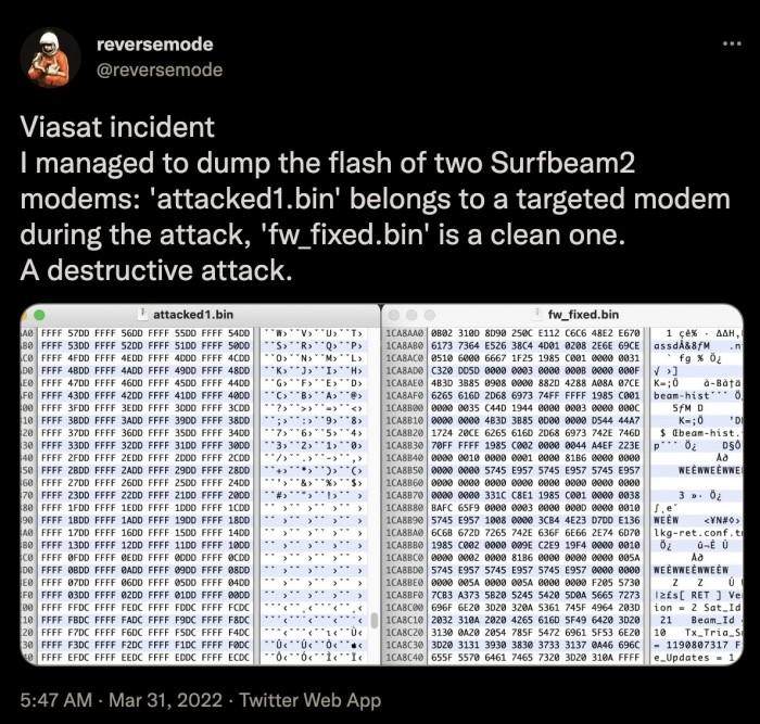 Surfbeam2 调制解调器攻击前后的并排比较(via SentinelLabs)