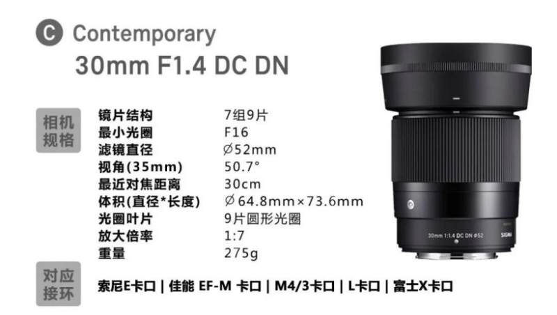 今年 2 月份,适马正式发布了富士 X 卡口的“三剑客”镜头,包括 16mm F1.4 DC DN 丨 Contemporary、30mm F1.4 DC DN 丨 Contemporary、56mm F1.4 DC DN 丨 Contemporary。同时,适马宣布 X 卡口阵容未来将进一步扩大。