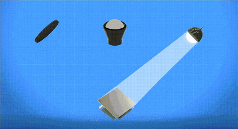 下图是DMD芯片每一个微镜翻转,折射光线的过程,每一片微镜都可以单独控制,折射相应的光线,从而形成不同的色彩、明暗,每一个微镜就如同我们电视的每一个像素点。