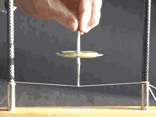 至于陀螺仪的结构,核心就是一个呼呼转不停的转子,作为其他运动物体的静止锚定物。下图,高速旋转的陀螺在一条线上保持平衡,这就是陀螺仪的基本原理。