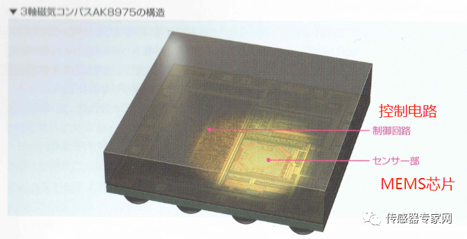 下图是一个3轴MEMS磁传感器封装结构图,包含MEMS芯片和控制电路。