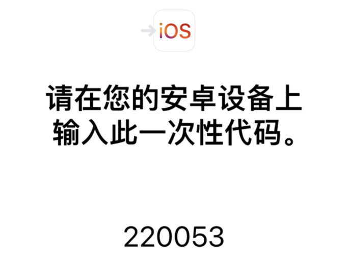 此时 iPhone 会给到我们一个一次性代码让我们输入到安卓设备上: