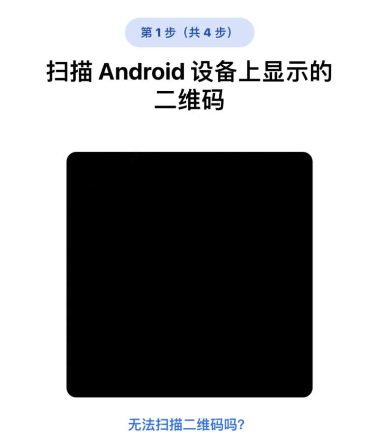 “ 转移到 Android ” 让我用 iPhone 扫描安卓设备上显示的二维码,然而我的小米手机根本找不到这个码,直接就被卡在了第一步。。。