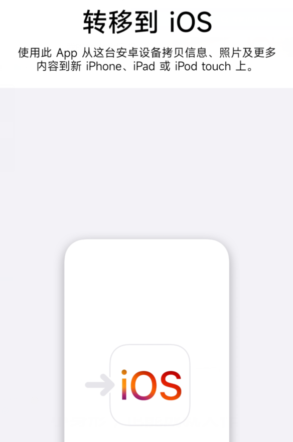 想借助这个 App 把数据从安卓迁移到 iPhone,我们首先需要在安卓手机下载 “ 转移到 iOS ”,然后在 iPhone 上选择 “ 从安卓设备转移数据 ”: