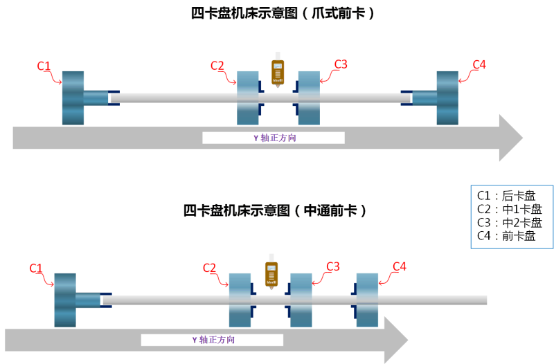 面对长管材加工,C3和C4加入工作,特别是C4前卡盘,它负责拉料,不仅提升了加工稳定性,还增强了承重能力。