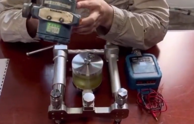 安装前确认校验台不带压。打开分析仪,拧紧泄压阀,给变送器通电,10分钟后进行校验。