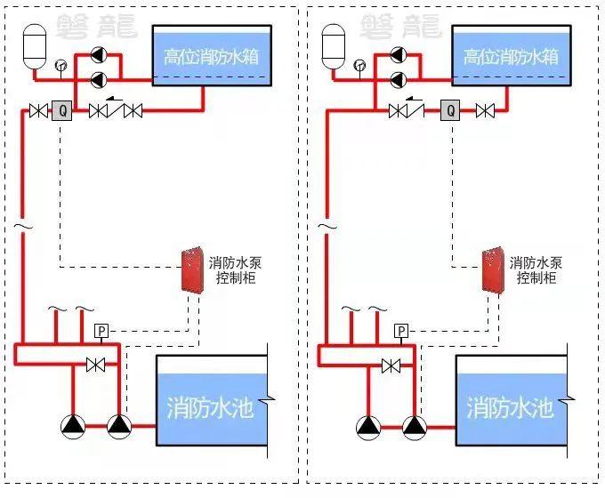 这种方式适应于启动流量相对较大的系统,比如消火栓系统等,不适应于启动流量较小的系统,比如自动喷水灭火系统。