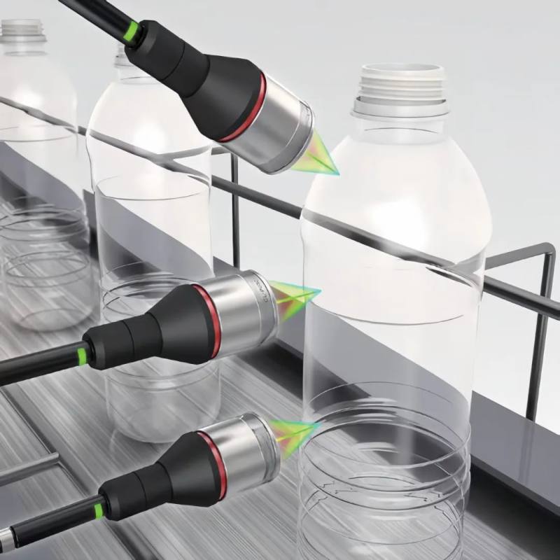 瓶身曲面需通过治具校准法线方向,确保传感器光束垂直入射以避免余弦误差。
