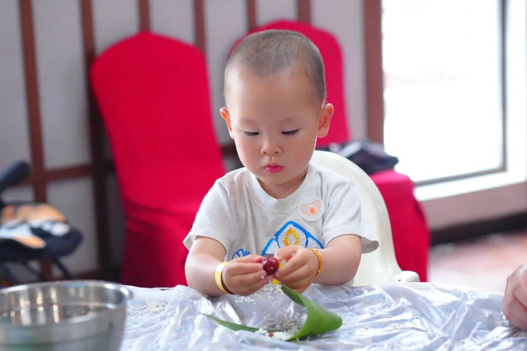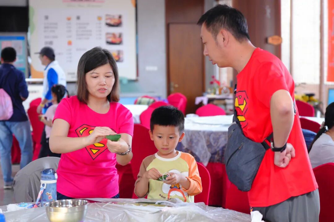 在文化体验环节,讲师首先为大家详细讲述了历史人物屈原的故事,生动地引出了粽子文化的起源和内涵。随后,职工家庭亲手体验包粽子的乐趣。大家围坐在一起,粽叶翻折间,糯米与其他馅料的香气四溢。孩子们在家长的指导下学习如何缠粽绳,尽管手法青涩,却在动手实践中感受到了屈原故事的深远意义和传统文化的独特魅力。
