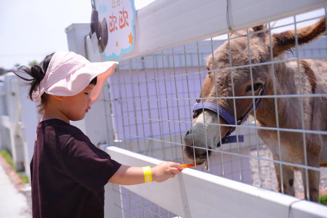 伴随着欢乐的氛围,多元活动点燃了现场的热情。亲子家庭组合骑乘毛毛虫道具,在“虫虫快跑” 游戏中快乐冲刺,银铃般的笑声此起彼伏。“穿越火线” 绳网迷宫挑战中,家长与孩子默契配合,侧身闪避、跳跃前进,肢体律动间笑声不断。在番茄采摘区,“小小果农” 们专注搜寻红果,亲子共拎果篮的画面洋溢着劳动的喜悦。萌宠乐园中,小毛驴 “欧欧” 凭借温顺性格圈粉无数,孩子们投喂胡萝卜时的紧张与合影时的雀跃,为端午增添童真色彩。薰衣草编织环节里,亲子携手用芬芳花束编织花环,让花香缠绕指间,定格美好亲情。