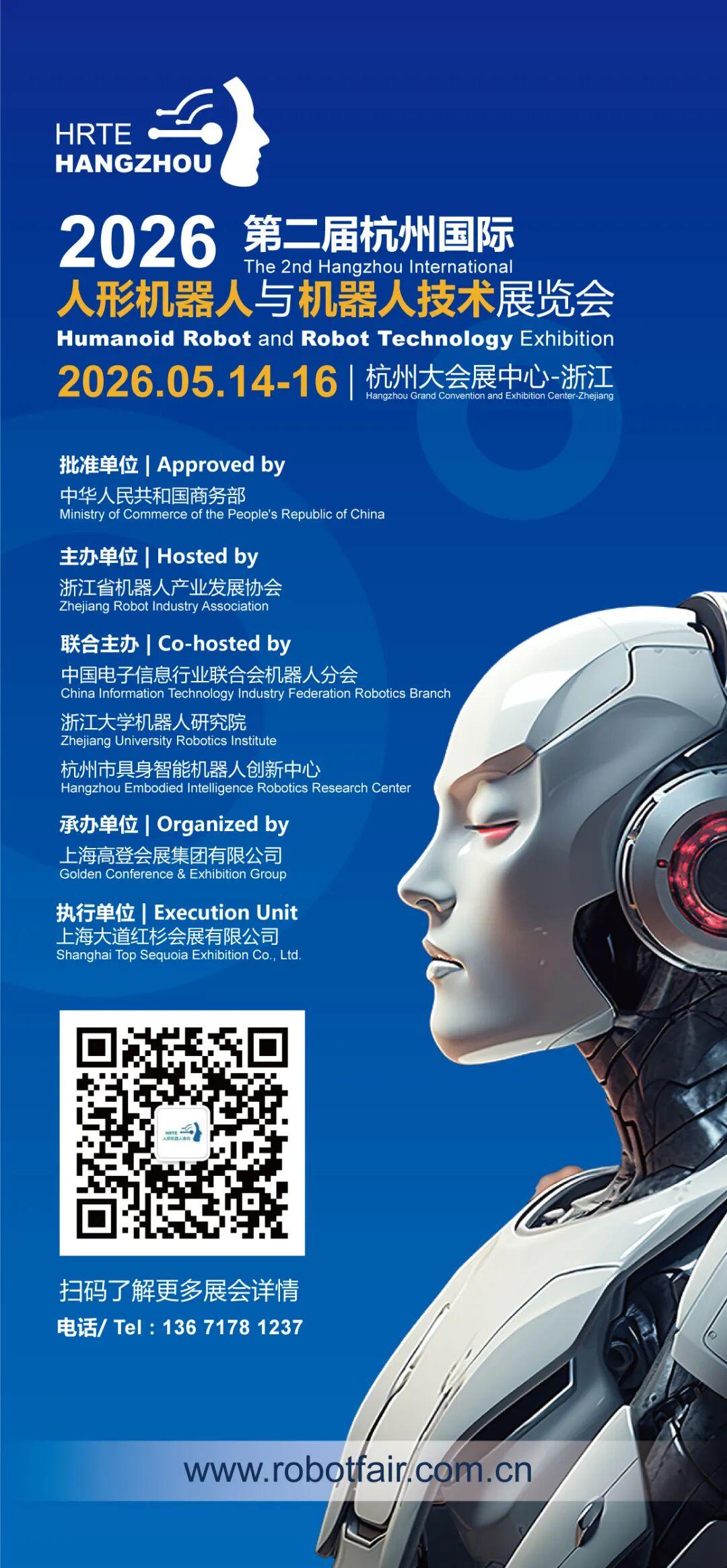 重磅!HRTE2026第二届杭州国际人形机器人与机器人技术展览会招商工作正式拉开帷幕!此次展会将于2026年5月14-16日在杭州大会展中心震撼登场,一举启用7号馆·8号馆,规模空前,令人瞩目。作为国内首个人形机器人全产业链专业展会,本届HRTE2026意义非凡。它将全方位、系统性地展示从关键零部件的精密研发,到整机制造的精湛工艺,再到系统集成的创新成果,构建起人形机器人全生态链的创新盛景。