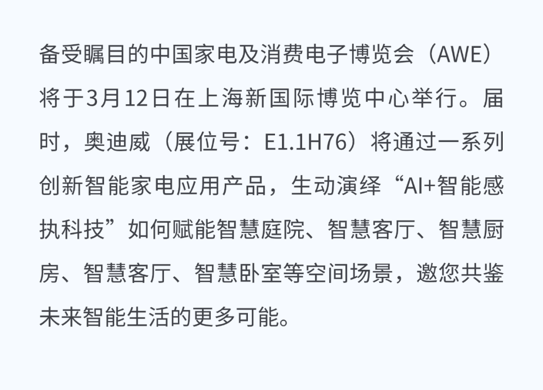 AWE 2026 | 奥迪威诚邀共鉴:“AI+感执科技”筑就美好生活