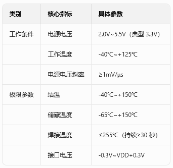 支持DC 2.0V~5.5V 超宽工作电压,兼容干电池、锂电池、稳压电源等多种供电方案,无需额外设计稳压电路,从小型消费电子到工业设备均可完美适配;工业级宽温设计,工作温度覆盖 - 40℃~+125℃,能应对户外低温、工业厂房高温等严苛环境,适配性远超常规消费级芯片。