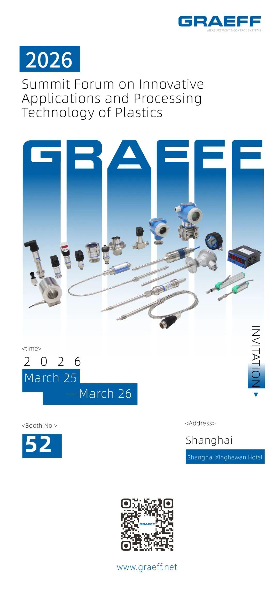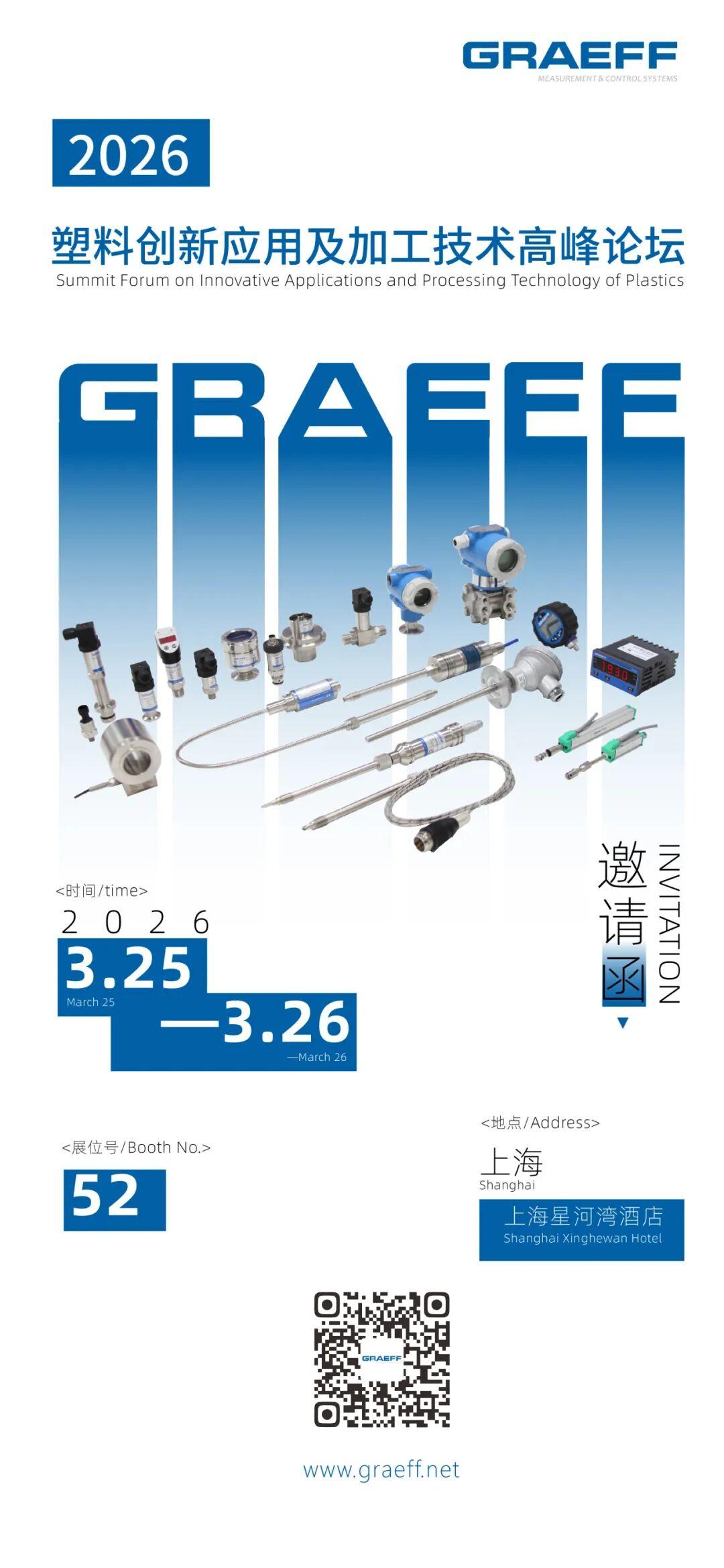 GRAEFF will make a high-profile appearance with a full range of measurement and automation control solutions, providing accurate, stable and intelligent measurement and control support for the entire process of plastic processing, modification and recycling.We sincerely welcome colleagues from all sectors to visit and communicate with us, exploring new paths for intelligent control and green development in the plastics industry.