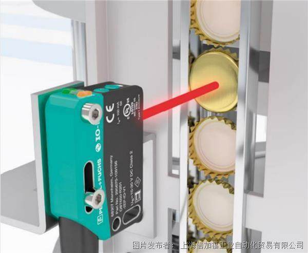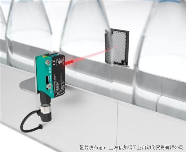 在包装行业中,瓶盖安装是针对瓶装液体非常重要的一道工序。倍加福 R10x/R20x 系列漫发射模式测量传感器,监控自动进盖过程,确保瓶子填充后可靠的封装。