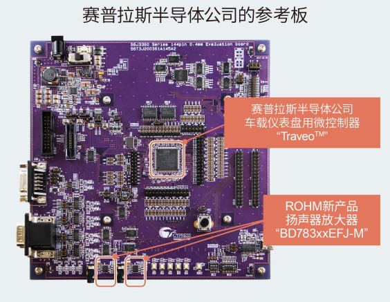 “BD783xxEFJ-M”已被搭载于赛普拉斯半导体公司的车载用微控制器TraveoCluster MCU家族S6J3360系列的评估板中,可在接近实际使用的环境下轻松进行评估。