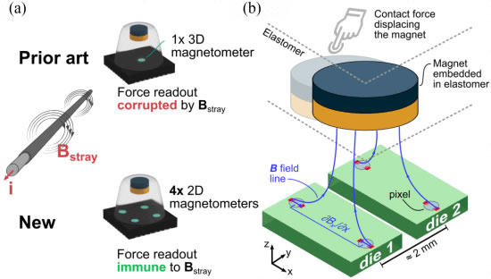 Tactaxis采用的梯度测量方法能够使传感器不受杂散磁场干扰,这样可以防止潜在的测量错误,它也足够坚固耐用,以应对恶劣的条件(如温度变化等)。与DIGIT基于光学技术的触觉传感器不同,Tactaxis是可以大批量生产工厂校准的集成式传感器,这种半导体工艺能够带来巨大的成本和可靠性优势。