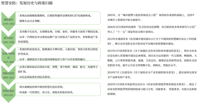 除了消费端的物联网应用,产业端对物联网应用的需求随着工业4.0、碳中和碳达峰、雪亮工程、智慧城市等政策或项目的试点与推进,尤其在安防领域,从社区、园区、校园、工地到城市治理、环境水务等场景,安防的需求在逐年增大,传统意义上的以构建安全防范系统为主要目的的产业,以维护社会公共安全为目的的传统安防正在渗透到商业领域甚至家庭领域,行业边界变得越来越模糊,同时由于视频监控、数据存储、AI等技术的快速发展,泛视频AIoT的概念逐渐被大众所接受。