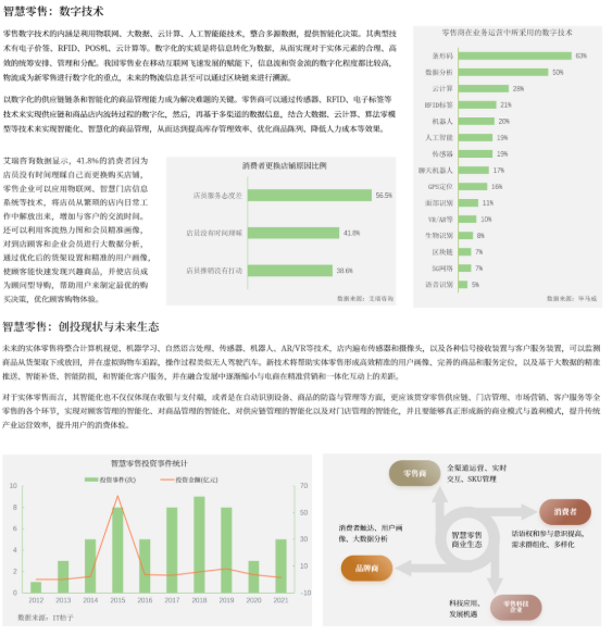 艾瑞咨询数据显示,41.8%的消费者因为店员没有时间理睬自己而更换购买店铺,零售企业可以应用物联网、智慧门店信息系统等技术,将店员从繁琐的店内日常工作中解放出来,增加与客户的交流时间。还可以利用客流热力图和会员精准画像,对到店顾客和企业会员进行大数据分析,通过优化后的货架设置和精准的用户画像,使顾客能快速发现兴趣商品,并使店员成为顾问型导购,帮助用户来制定最优的购买决策,优化顾客购物体验。