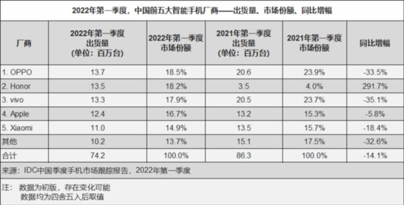 IDC 中国研究经理王希指出,由于去年同期的高基数影响,第一季度市场出现大幅下滑在预料之中。同时,目前国内疫情对手机市场在物流、供应端所带来的负面影响是相对可控的,所带来的是部分需求的延迟满足。另外,海外部分重点市场前景依旧不明朗,核心元器件持续高企的成本,将令众多手机厂商采取更加稳健、保守的运营策略。这些因素共同作用,将持续冲击国内手机市场的表现。